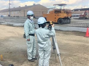 建設現場では、測量機器の操作実習を行いました。実際に操作したのは今回が初めてだったそうです。