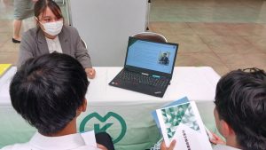 当社ブースにも来訪していただき、会社の概要や仕事内容、福利厚生などについて説明しました。