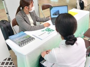 当日は、主に建築学科3年生の学生の方が参加されており、興味のある企業のブースを訪れ、企業の話を聞いていました。